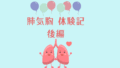 ✅️肺の中(気管から空気が入ってくる部分)と、胸腔(肺の外側、胸の壁との間のスペース)は普通は密着していて空気がない状態なのだが、肺がしぼんだことで胸腔に空気が漏れ出し肺を外側から押してしまっている状態らしい。